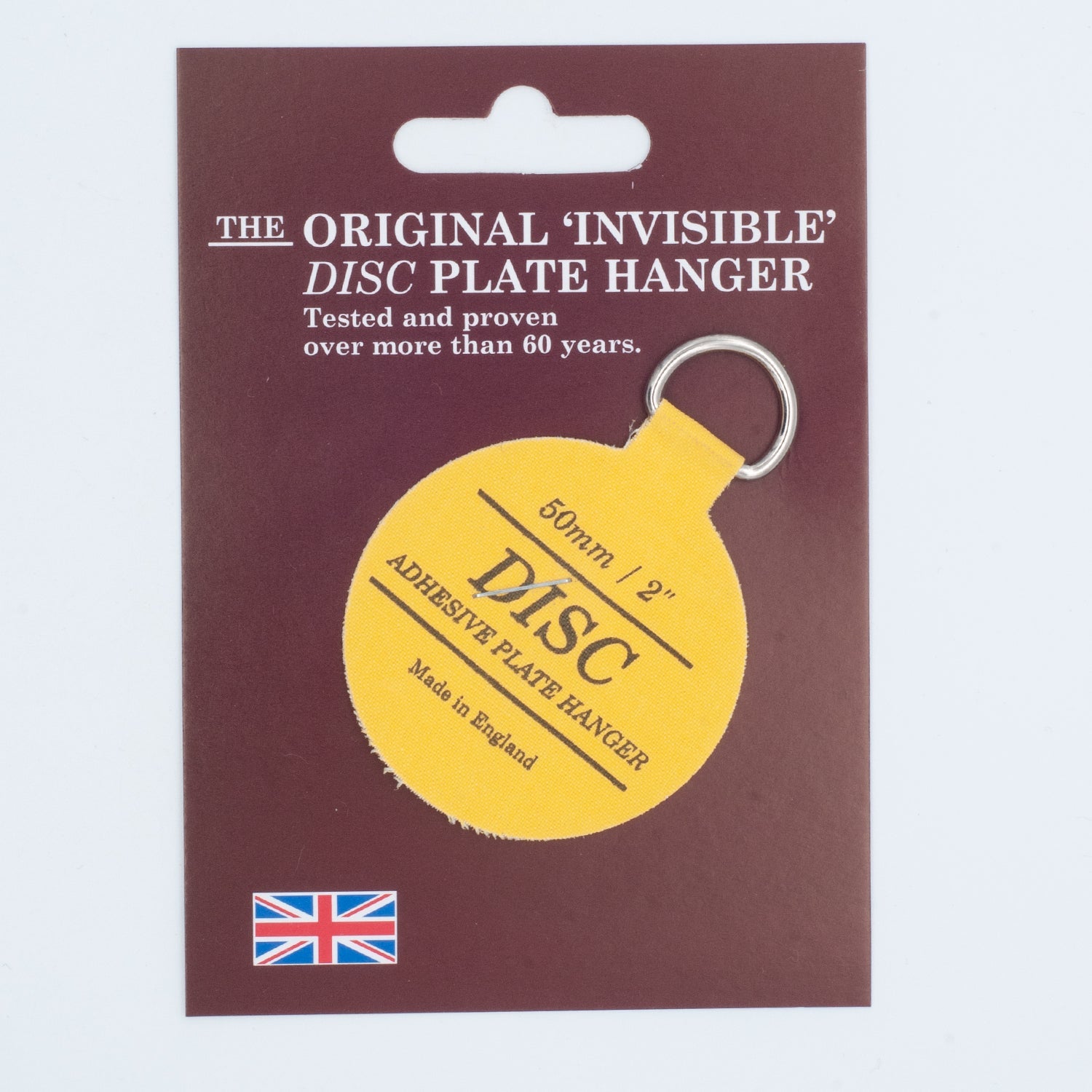 The Original invisible adhesive disc plate hanger. Stayed the same for 50 years and still working! No more metal hangers or wire required with this tidy little invention. The disc plate hanger sticks to the back of the plate, holds it flat and secure against the wall and cannot be seen.