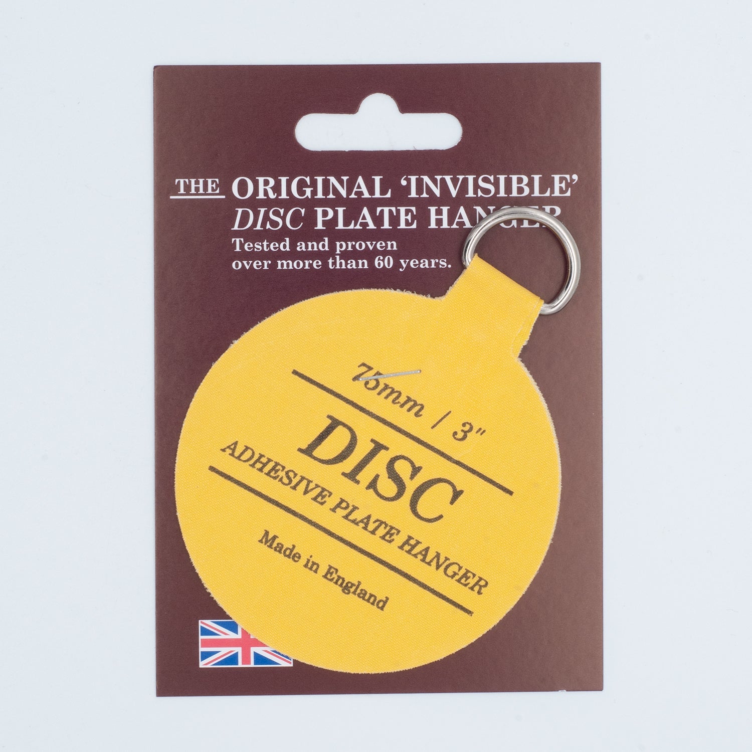 The Original invisible adhesive disc plate hanger. Stayed the same for 50 years and still working! No more metal hangers or wire required with this tidy little invention. The disc plate hanger sticks to the back of the plate, holds it flat and secure against the wall and cannot be seen.