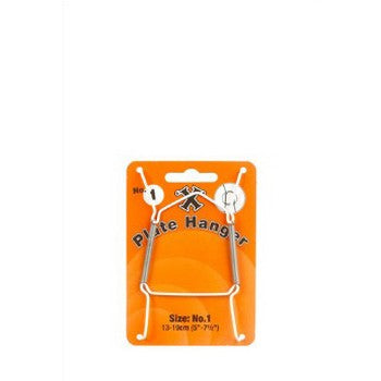 A traditional plate hanger made from strong steel wire with white plastic coating held together with quality zinc plated springs. The 4 hook ends grip your plate securely using the tension in the springs. Designed to hang from a picture hook using the loop on the reverse. Plate hangers are available in 4 sizes to show off your best decorative plates