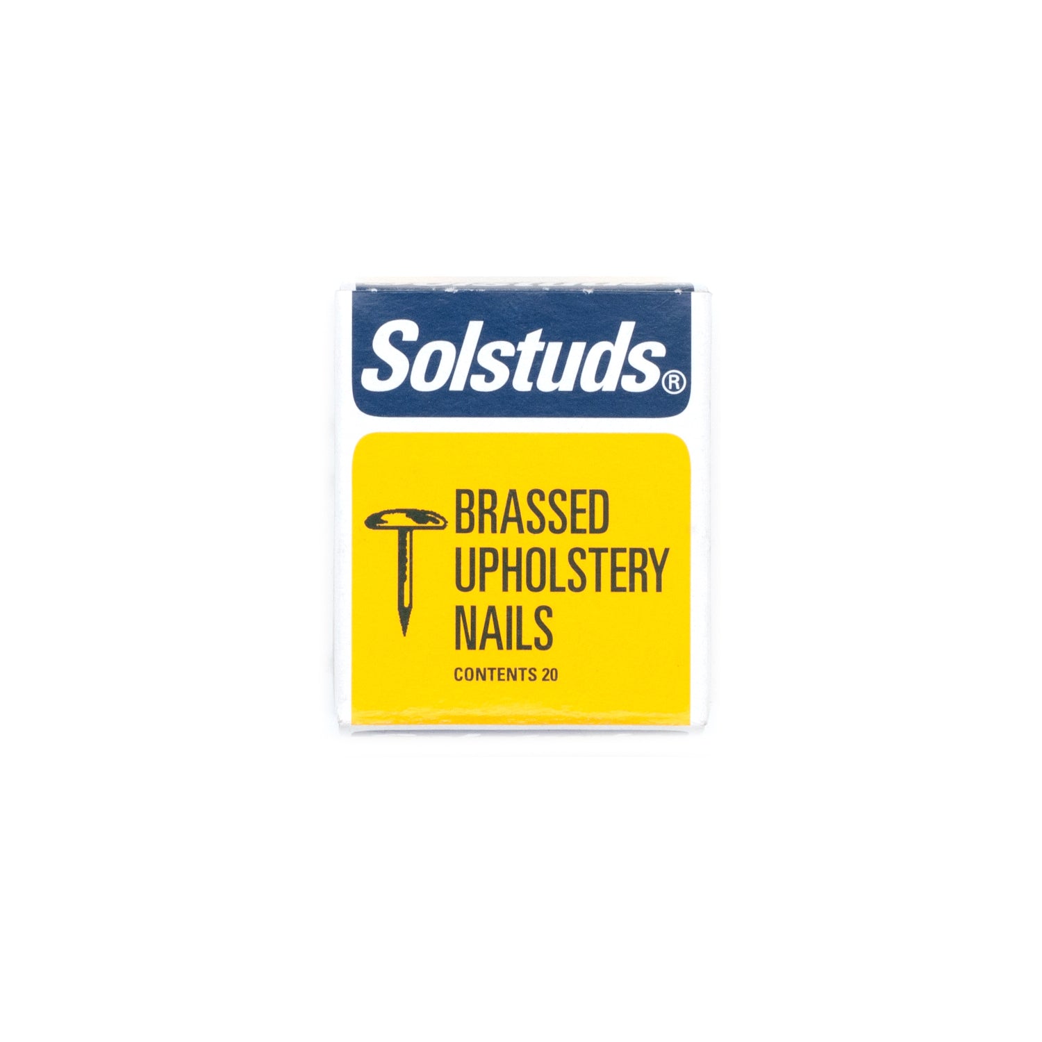 Brassed Solstuds. Brass Plated Flat Dome Upholstery Nails - a domed head Upholstery nail for a high quality finish. Sold in various quantities and packs. Assured quality with our famous Challenge brand.
